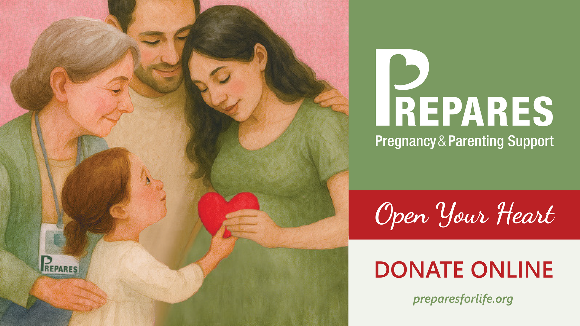PREPARES – Pregnancy & Parenting Support – is our promise to care for mothers and fathers from pregnancy to the child’s fifth birthday – no matter their beliefs. This program is a way we can “walk our talk” about celebrating the gift of life and making sure that no child – born or unborn – is ever abandoned or alone.