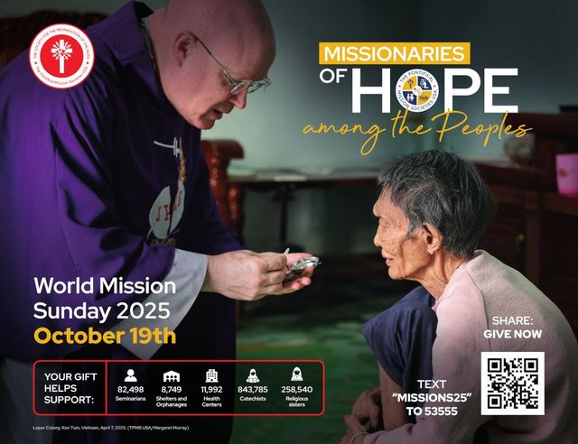 Next weekend on October 19, World Mission Sunday, we join Catholics worldwide in this annual Eucharistic celebration for the missions of the Church. We set aside this day as a time for Catholics around the world to gather, pray, and fundraise for global mission. To donate or for more info,